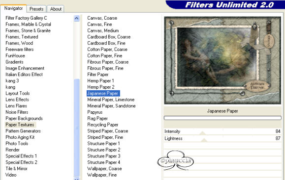 Effetti>Plugins>Filters Unlimited - Paper Textures - Japanese Paper, con i settaggi standard.