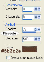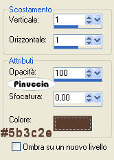 16. Effetti>Effetti 3D>Sfalsa ombra, con i seguenti settaggi, colore #5b3c2e.