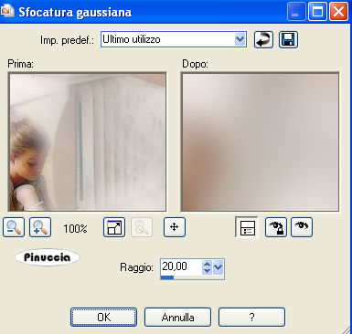 Regola>Sfocatura>Sfocatura gaussiana, raggio 20.