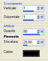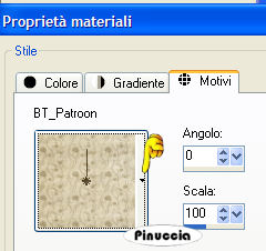 qui puoi trovare qualche risposta ai tuoi dubbi. Se l'argomento che ti interessa non è presente, ti prego di segnalarmelo. Questo tutorial è stato scritto con PSP 9, ma può essere eseguito anche con le altre versioni di PSP. Occorrente: Materiale qui Per questo tutorial ho usato un tube di Marcio e diversi scraptubes.* Per favore, rispetta il lavoro degli autori e mantieni i tubes al loro stato originale. Attenzione, i livelli dei tubes sono chiusi. *I tubes per lo scrap sono stati acquistati personalmente dall'autrice del tutorial. Puoi utilizzarli soltanto per questo tutorial, e per il tuo uso personale. Non puoi offrirli in vendita, o condividerli, o usarli per i tuoi tutorial, o per altri scopi commerciali. Leggi attentamente le condizioni e i termini d'uso dei disegnatori di scrap. altrimenti l'autrice smetterà di scrivere tutorial di scrap. Grazie per la tua collaborazione. Filtro: FM Tile Tools qui 1. Apri una nuova immagine trasparente 680 x 500 pixels. Selezione>Seleziona tutto. 2. Apri "BT_Achtergrond_01", e vai a Modifica>Copia. Torna alla tua immagine trasparente e vai a Modifica>Incolla>Incolla nella selezione. Selezione>Nessuna selezione. 3. Apri "BT_Achtergrond_02", e vai a Modifica>Copia. Torna al tuo lavoro e vai a Modifica>Incolla>Incolla come nuovo livello. Spostalo a destra, come nel mio esempio.![]() 4. Apri "BT_Achtergrond_03", e vai a Modifica>Copia. Torna al tuo lavoro e vai a Modifica>Incolla>Incolla come nuovo livello. Spostalo sopra i due livelli precedenti, a destra.![]() 5. Apri il tube "BT_Ribbon_01", e vai a Modifica>Copia. Torna al tuo lavoro e vai a Modifica>Incolla>Incolla come nuovo livello. Nella paletta dei livelli spostalo sotto il livello Raster 3, in modo che una parte del nastro rimanga nascosto. ![]() Effetti>effetti 3D>Sfalsa ombra, con i seguenti settaggi. ![]() Ripeti l'Effetto Sfalsa ombra, ma cambiando verticale e orizzontale a -1. 6. Attiva il livello superiore. Apri il tube "BT_Stitching", e vai a Modifica>Copia. Torna al tuo lavoro e vai a Modifica>Incolla>Incolla come nuovo livello. Sposta il tube sulla destra del nastro.![]() 7. Apri il tube "BT_Goldribbon", e vai a Modifica>Copia. Torna al tuo lavoro e vai a Modifica>Incolla>Incolla come nuovo livello. Spostalo a sinistra, esattamente tra lo sfondo chiaro e quello scuro.![]() Effetti>Effetti 3D>Sfalsa ombra, con gli stessi settaggi del passo 5. 8. Apri il tube "BT_Ribbon_02", e vai a Modifica>Copia. Torna al tuo lavoro e vai a Modifica>Incolla>Incolla come nuovo livello. Spostalo contro il bordo inferiore.Effetti>Effetti 3D>Sfalsa ombra, con i settaggi precedenti. 9. Apri il tube "BT_Ribbon_03", e vai a Modifica>Copia. Torna al tuo lavoro e vai a Modifica>Incolla>Incolla come nuovo livello. Spostalo sopra il nastro precedente.![]() Effetti>Effetti 3D>Sfalsa ombra, con i settaggi precedenti. 10. Apri "BT_Achtergrond_Frame" e vai a Modifica>Copia. Apri "BT_Frame". Elimina i livelli di sfondo e del watermark e vai a Modifica>Incolla>Incolla come nuovo livello. Nella paletta dei livelli sposta il livello di sfondo sotto la cornice. ![]() Livelli>Unisci>Unisci visibile. 11. Copia questo livello Uniti: Modifica>Copia. Torna al tuo lavoro e vai a Modifica>Incolla>Incolla come nuovo livello. Sposta l'immagine come mostrato nella schermata sotto:![]() Effetti>Effetti 3D>Sfalsa ombra: ![]() Ripeti l'Effetto Sfalsa ombra, ma cambiando verticale e orizzontale a -1. 12. Apri il tube "mc_751". Immagine>Ridimensiona, al 50%, ricampionamento bicubica, tutti i livelli selezionato. ![]() Assicurati di essere posizionato sul livello del tube. Regola>Saturazione e tonalità>Viraggio: ![]() 13. Modifica>Copia. Torna al tuo lavoro e vai a Modifica>Incolla>Incolla come nuovo livello. Sposta il tube a sinistra, sulla cornice.![]() Effetti>Plugins>FM Tile Tools - Blend Emboss, con i settaggi standard. ![]() 14. Apri il tube "BT_Pin", e vai a Modifica>Copia. Torna al tuo lavoro e vai a Modifica>Incolla>Incolla come nuovo livello. Sposta il tube a sinistra.Effetti>Effetti 3D>Sfalsa ombra: ![]() Regola>Messa a fuoco>Maschera di contrasto: ![]() 15. Apri il tube "BT_Corner", e vai a Modifica>Copia. Torna al tuo lavoro e vai a Modifica>Incolla>Incolla come nuovo livello. Spostalo in basso a destra della cornice.Effetti>Effetti 3D>Sfalsa ombra: ![]() Ripeti l'Effetto Sfalsa ombra, ma cambiando verticale e orizzontale a -1. 16. Apri il tube "BT_Label", e vai a Modifica>Copia. Torna al tuo lavoro e vai a Modifica>Incolla>Incolla come nuovo livello. Spostalo in alto a destra, come nel mio esempio.![]() Immagine>Ruota>Ruota per gradi, 3 gradi a sinistra. ![]() Effetti>Effetti 3D>Sfalsa ombra: ![]() Ripeti l'Effetto Sfalsa ombra, ma cambiando verticale e orizzontale a -1. 17. Apri il tube "BT_Brad", e vai a Modifica>Copia. Torna al tuo lavoro e vai a Modifica>Incolla>Incolla come nuovo livello. Spostalo sopra il foro dell'etichetta.![]() Effetti>Effetti 3D>Sfalsa ombra, con i settaggi precedenti. 18. Apri il tube "BT_Bouquet", e vai a Modifica>Copia. Torna al tuo lavoro e vai a Modifica>Incolla>Incolla come nuovo livello. Livelli>Disponi>Sposta giù. Effetti>Effetti 3D>Sfalsa ombra, con i settaggi precedenti. Attiva il livello superiore. 19. Apri il tube "BT_Wordart", e vai a Modifica>Copia. Torna al tuo lavoro e vai a Modifica>Incolla>Incolla come nuovo livello. Spostalo in basso a sinistra.Effetti>Effetti 3D>Sfalsa ombra: ![]() Regola>Messa a fuoco>Maschera di contrasto: ![]() 20. Apri il tube "BT_French lily", e vai a Modifica>Copia. Torna al tuo lavoro e vai a Modifica>Incolla>Incolla come nuovo livello. Spostalo in basso a destra.Effetti>Effetti 3D>Sfalsa ombra: ![]() Ripeti l'Effetto Sfalsa ombra, ma cambiando verticale e orizzontale a -1. 21. Controlla che tutti i tubes siano al posto giusto. Se necessario, puoi ancora spostarli, per sistemarli meglio. Livelli>Unisci>Unisci tutto. 22. Immagine>Aggiungi bordatura, 15 pixels, simmetriche, con il colore bianco. Seleziona il bordo con la bacchetta magica , sfumatu