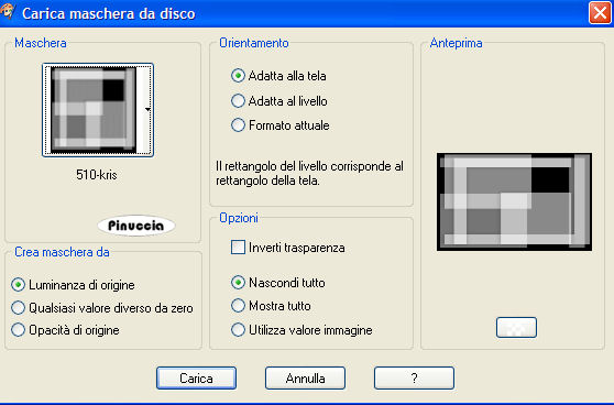 qui puoi trovare qualche risposta ai tuoi dubbi. Se l'argomento che ti interessa non è presente, ti prego di segnalarmelo. Occorrente: Materiale qui Il bel tube è di Jet La maschera è di MsKris Gli elementi scrap sono di Scrappy Expressions Filtro Penta.com qui Metti la maschera nella cartella maschere di PSP. Metti i pennelli nella cartella pennelli di PSP. Apri il resto del materiale in PSP. Imposta il colore di primo piano sul nero, e il colore di sfondo con un colore chiaro preso dal tube. Io ho scelto #b7a197. Apri una nuova immagine trasparente 750x475 pixels, e riempila con il nero.Livelli>Nuovo livello raster. Riempi con il colore di sfondo.per riempire con il colore di sfondo, devi cliccare con il tasto destro del mouse. Livelli>Carica/salva maschera>Carica maschera da disco. Cerca e carica la maschera 510-kris. ![]() Livelli>Unisci>Unisci gruppo. Effetti>Effetti di bordo>Aumenta. Apri il tube e vai a Modifica>Copia. Torna al tuo lavoro e vai a Modifica>Incolla>Incolla come nuovo livello. Spostalo un po' a sinistra.Livelli>Disponi>Sposta giù. Attiva il livello superiore. Modifica>Incolla>Incolla come nuovo livello (il tube è ancora in memoria). Immagine>Ridimensiona, all'85%, bicubica, tutti i livelli NON selezionato. ![]() Spostalo a destra, nell'angolo.Effetti>Effetti 3D>Sfalsa ombra, con i seguenti settaggi, colore nero. ![]() Attiva Stepstitch e vai a Modifica>Copia. Torna al tuo lavoro e vai a Modifica>Incolla>Incolla come nuovo livello. Spostalo a destra.Livelli>Disponi>Sposta giù. Attiva il livello superiore. Attiva DoodleArt e vai a Modifica>copia. Torna al tuo lavoro e vai a Modifica>Incolla>Incolla come nuovo livello. Spostalo in basso a sinistra.Effetti>effetti 3D>Sfalsa ombra, con i settaggi precedenti, ma con il colore di sfondo (#b7a197). ![]() Livelli>Unisci>Unisci tutto. Immagine>Aggiungi bordatura, 2 pixels, simmetriche, con il colore di sfondo #b7a197. Immagine>Aggiungi bordatura, 25 pixels, simmetriche, con il colore #624c4f. Seleziona questo bordo con la bacchetta magica ![]() ![]() Effetti>Plugins>Penta.com - Dot and Cross. ![]() Selezione>Nessuna selezione. Immagine>Aggiungi bordatura, 5 pixels, simmetriche, con il colore di sfondo #b7a197. Seleziona questo bordo con la bacchetta magica ![]() Effetti>Plugins>Penta.com - Jean: ![]() Selezione>Nessuna selezione. Attiva lo strumento Pennello ![]() cerca e seleziona il pennello agibrush125-cestlavie. dimensione 210 pixels, e applicalo con il colore nero. Aggiungi il tuo watermark o il tuo nome. Io ho usato il font Mahogany script, dimensione 48 pixels. Salva in formato jpg. ![]() Se hai problemi o dubbi, o trovi un link non funzionante, o anche soltanto per un saluto, scrivimi. 7 Luglio 2007 |