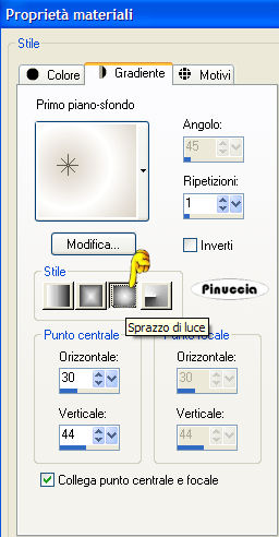 Passa il colore di primo piano a Gradiente di primo piano/sfondo, con i seguenti settaggi:
