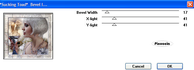 Effetti>Plugins>Toadies - *Sucking Toad* Bevel I (attenzione, nella lista è il primo), con i seguenti settaggi: