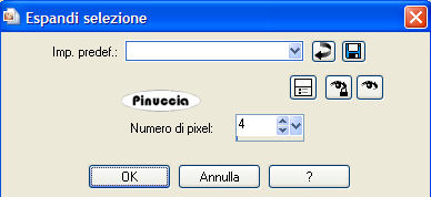 qui puoi trovare qualche risposta ai tuoi dubbi. Se l'argomento che ti interessa non è presente, ti prego di segnalarmelo. Questo tutorial è stato scritto in PSP 8.1, ma può essere eseguito anche con le altre versioni di PSP. Ho usato uno scrap kit di Scrappy Expression http://tech.groups.yahoo.com/group/ScrappyExpressions, che puoi trovare qui Il tube è di Serena Dallo scrap kit Marleschka ha creato un ornamento che trovi qui Attenzione: tutti i livelli dei tubes sono chiusi. Filtri: Filters Unlimited 2 qui FM Tile Tools qui 1. Apri una nuova immagine trasparente 800 x 600 pixels. Livelli>Nuovo livello raster. 2. Nel kit SE_ScrapKit_BlameItOnTheRain, clicca sul livello SE_BlameItOnTheRain_Paper_1, e vai a Modifica>copia. Modifica>Incolla>Incolla come nuova immagine. Imposta il colore di primo piano su Motivi e cerca l'immagine nella lista dei motivi. Non far caso al numero dell'immagine che vedi nell'esempio. Questo dipende da quante immagini hai aperto fino a quel momento. Seleziona l'immagine con i seguenti settaggi: ![]() e riempi l'immagine trasparente con questo motivo.(Puoi eliminare il file perchè non ti servirà più). 3. Nel kit SE_ScrapKit_BlameItOnTheRain, clicca sul livello SE_BlameItOnTheRain_Paper_2, e vai a Modifica>Copia. Modifica>Incolla>Incolla come nuova immagine. 4. Effetti>Plugins>I.C.NET Filters Unlimited 2 - Edge Square - Square Edge 12. Modifica>Copia. 5. Ritorna al tuo lavoro e vai a Modifica>Incolla>Incolla come nuovo livello. Immagine>Ruota>Ruota per gradi, 45 gradi a destra o a sinistra, non ha importanza. Effetti>Plugins>FM Tile Tools - Blend Emboss, con i settaggi standard. ![]() 6. Effetti>Effetti 3D>Sfalsa ombra, con i seguenti settaggi, colore nero. ![]() Ripeti l'Effetto Sfalsa ombra, ma cambiando verticale e orizzontale a -2. Spostalo ![]() in basso finchè non si vede la punta superiore della carta. ![]() Livelli>Duplica. Immagine>Capovolgi. ![]() 7. Ritorna alla carta alla quale hai applicato il filtro Unlimited. Modifica>Annulla Azione Filters Unlimited. Modifica>Copia. Torna al tuo lavoro e vai a Modifica>Incolla>Incolla come nuovo livello. Lasciala come sta. E' già correttamente posizionata. Ora puoi cancellare la carta, perchè non ti servirà più. 8. Effetti>Plugins>FM Tile Tools - Blend Emboss, con i settaggi standard, 2 volte. Effetti>Effetti 3D>Sfalsa ombra, con i settaggi usati al punto 6. 9. Nel kit SE_ScrapKit_BlameItOnTheRain, clicca sul livello SE_BlameItOnTheRain_Ric-Rac, e vai a Modifica>Copia. Torna al tuo lavoro e vai a Modifica>Incolla>Incolla come nuovo livello. Immagine>Ridimensiona, all'85%, tutti i livelli non selezionato. Con lo strumento Deformazione ![]() (puntatore , se stai usando PSP X),"tira" il nastro per adattarlo alla larghezza della tela. Posizionalo in basso, vedi il mio esempio.Cambia la modalità di miscelatura di questo livello in Luminanza (esistente). 10. Effetti>Effetti 3D>Sfalsa ombra, con i seguenti settaggi, colore nero. ![]() 11. Nel kit SE_ScrapKit_BlameItOnTheRain, clicca sul livello SE_BlameItOnTheRain_Paper_3, e vai a Modifica>Copia. Torna al tuo lavoro e vai a Modifica>Incolla>Incolla come nuovo livello. Con lo strumento Deformazione "tira" la carta in alto e in basso in modo che diventa alta quanto la tua immagine.Spostala completamente a sinistra.![]() 12. Effetti>Effetti 3D>Sfalsa ombra, con i seguenti settaggi, colore nero. ![]() Livelli>Duplica. Immagine>Rifletti. 13. Modifica>Incolla>Incolla come nuovo livello (la carta dovrebbe essere ancora in memoria; se non è così copiala nuovamente). Immagine>Ruota>ruota per gradi, 40 gradi a destra. Spostala nell'angolo in alto a sinistra.![]() Effetti>Effetti 3D>Sfalsa ombra, con i settaggi del passo 12. Livelli>Duplica. Immagine>Rifletti. Livelli>Unisci>Unisci giù. Livelli>Duplica. Immagine>Capovolgi. 14. Nel kit SE_ScrapKit_BlameItOnTheRain, clicca sul livello SE_BlameItOnTheRain_Frame, e vai a Modifica>Copia. Torna al tuo lavoro e vai a Modifica>Incolla>Incolla come nuovo livello. 15. Con la bacchetta magica clicca all'interno della cornice.Selezione>Modifica>Espandi, di 4. ![]() Livelli>Nuovo livello raster. Livelli>Disponi>Sposta giù. Torna all'ultima carta e copiala nuovamente. Ritorna al tuo lavoro e vai a Modifica>Incolla>Incolla nella selezione. Selezione>Nessuna selezione. Effetti>Effetti 3D>Sfalsa ombra, con i seguenti settaggi, colore nero. ![]() 16. Torna sul livello della cornice (il livello superiore) e con la bacchetta magica clicca all'interno della cornice.Selezione>Modifica>Espandi di 4 pixels. Livelli>Nuovo livello raster. Livelli>Disponi>Sposta giù. 17. Apri il tube CliveOwen003-sdh e vai a Modifica>Copia. Torna al tuo lavoro e vai a Modifica>Incolla>Incolla nella selezione. Selezione>Nessuna selezione. Con lo strumento Deformazione , spingi il tube un po' dall'alto.