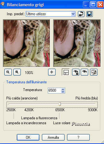 qui puoi trovare qualche risposta ai tuoi dubbi. Se l'argomento che ti interessa non è presente, ti prego di segnalarmelo. Questo tutorial è stato realizzato con PSP 9. Occorrente: Materiale qui comprendente: le immagini, la cornice-immagine (da mettere nella cartella cornici-immagini di PSP), i fonts e un pennello. Il tube di un fiore a scelta. Filtri: Flaming Pear Flaming Pear qui Fotomatic qui OptikVerve Labsqui 1. Apri le tue immagini. Duplicale (Shift+D) e chiudi gli originali. 2. Attiva l'immagine 1. Con lo strumento Lasso così impostato:![]() 3. Circonda l'immagine della donna come si vede nella schermata sotto: ![]() 4. Nella paletta dei livelli, clicca con il tasto destro del mouse su questo livello e scegli "Innalza livello di sfondo". Premi sulla tastiera il tasto CANC. Dovresti avere questo: ![]() 5. Selezione>Inverti. Clicca con il tasto destro del mouse e scegli Copia. 6. Apri l'immagine 3. Incolla l'immagine 2 come un nuovo livello sull'immagine 3 (vedi tag finale). Nella paletta dei livelli rinomina questo livello "Immagine 1". 7. Attiva lo strumento Gomma con i seguenti settaggi:![]() Livelli>Nuovo livello raster. Riempi il livello con il colore scuro.Sposta questo livello sotto il livello "Immagine 1". Nella paletta dei livelli, posizionati sul livello "Immagine 1" e cancella tutte le parti bianchi rimanenti dal contorno dell'immagine. Scegli una dimensione più piccola per la gomma per cancellare più facilmente i segni che si trovano sopra la testa. (In questo passaggio, approfitta della gomma per cancellare eventuali imperfezioni dell'immagine). Una volta terminato, posizionati sul livello colorato, clicca con il tasto destro del mouse e scegli Elimina. ![]() 8. Nella paletta dei livelli, posizionati sul livello "Immagine 1". Con lo strumento Deformazione utilizzando il nodo in alto a sinistra, ingrandisci leggermente l'immagine.![]() 9. Apri l'immagine n. 2. Ripeti i passaggi 2 - 3 - 4 - 5 - 6 e 7. Cancella bene le parti bianche che rimangono attorno all'immagine. Nella paletta dei livelli, rinomina questo livello "immagine 2". Dovresti avere questo: ![]() Livelli>Unisci>Unisci visibile. 10. Regola>Bilanciamento colore>Bilanciamento grigi: ![]() ![]() 11. Effetti>Plugins>Flaming Pear /Aetherize. ![]() 12. Immagine>Cornice immagine: Cerca la cornice "Sous-verre02" e applicala. ![]() Livelli>Unisci>Unisci visibile. 13. Effetti>Plugins>Fotomatic / Skygrad. ![]() 14. Apri il tube del fiore e vai a Modifica>Copia. Torna al tuo lavoro e vai a Modifica>Incolla>Incolla come nuovo livello. Immagine>Ridimensiona, dell'80% (tutti i livelli non selezionato). Con lo strumento Spostamento posiziona questo tube