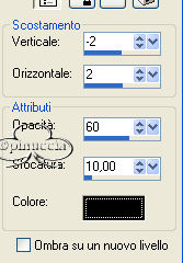 qui puoi trovare qualche risposta ai tuoi dubbi. Se l'argomento che ti interessa non è presente, ti prego di segnalarmelo. Lo Scrapkit è di: Monti's Lilac Blue Silver Modern Christmas Scrap Kit. Puoi usare questo tutorial per fare i tuoi personali auguri di Natale, mettendo nelle cornici tue fotografie. Occorrente: Materiale qui Metti il pennello nella cartella pennelli, la selezione nella cartella selezioni e apri i tubes in PSP. qui puoi trovare qualche risposta ai tuoi dubbi. Se l'argomento che ti interessa non è presente, ti prego di segnalarmelo. Apri una nuova immagine trasparente 700 x 500 pixels e riempila con un colore blue (#8eafd2).Selezione>Carica/Salva selezione>Carica selezione da disco. Cerca e carica la selezione "Hedge" ![]() Apri il file "MontiChristmasBS-Paper-BlueTrees" e vai a Modifica>Copia. Torna al tuo lavoro e vai a Modifica>Incolla>Incolla come nuovo livello. Selezione>Inverti. Premi sulla tastiera una volta il tasto CANC. Effetti>Effetti 3D>Sfalsa ombra, con i seguenti settaggi: ![]() Selezione>Nessuna selezione. Apri "MontiChristmasBS-Ribbon-BlueSilvergroot" e vai a Modifica>Copia. Torna al tuo lavoro e vai a Modifica>Incolla>Incolla come nuovo livello. E' già al suo posto. Non occorre muoverlo. Effetti>Effetti 3D>Sfalsa ombra, con i settaggi precedenti. Apri "MontiChristmasBS-Rivet-Blue" e vai a Modifica>Copia. Torna al tuo lavoro e vai a Modifica>Incolla>Incolla come nuovo livello. Attiva lo strumento Bacchetta magica , sfumatura 1e seleziona il centro dell'anello. ![]() Attiva il livello raster 3 (quello del nastro) e premi sulla tastiera una volta il tasto CANC. Selezione>Nessuna selezione. Attiva il livello superiore. Apri "Slantstitch-mizmelscrap" e vai a Modifica>copia. Torna al tuo lavoro e vai a Modifica>Incolla>Incolla come nuovo livello. Spostalo sul bordo superiore del nastro.Livelli>Duplica. Spostalo sul bordo inferiore del nastro.perchè siano perfettamente allineate in verticale, usa il tip spiegato qui Apri una delle due cornici "MontiChristmasBS-Frame-BlueSilver" e vai a Modifica>Copia. Torna al tuo lavoro e vai a Modifica>Incolla>Incolla come nuovo livello. Spostala a destra in basso.Seleziona con la bacchetta magica il centro della cornice.Livelli>Nuovo livello raster. Livelli>Disponi>Sposta giù. Riempi la selezione con un colore blu chiaro(#a8daf4) oppure metti una tua foto. Posizionati sul livello superiore. Effetti>Effetti 3D>Sfalsa ombra, con i settaggi precedenti. Apri la seconda cornice "MontiChristmasBS-Frame-BlueTrees" e vai a Modifica>Copia. Torna al tuo lavoro e vai a Modifica>Incolla>Incolla come nuovo livello. Spostala a destra in basso.Seleziona con la bacchetta magica il centro della cornice.Livelli>Nuovo livello raster. Livelli>Disponi>Sposta giù. Riempi la selezione con un colore blu chiaro(#a8daf4) oppure metti una tua foto. Posizionati sul livello superiore. Effetti>Effetti 3D>Sfalsa ombra, con i settaggi precedenti. Apri "MontiChristmasBS-TreeDotted-Blue" e vai a Modifica>Copia. Torna al tuo lavoro e vai a Modifica>Incolla>Incolla come nuovo livello. Posiziona l'albero dentro la cornice di sinistra.Livelli>Disponi>Sposta giù. Effetti>Effetti 3D>Sfalsa ombra, con i settaggi precedenti. Attiva il livello Raster 7 (il livello dello sfondo con la cornice destra). Apri "MontiChristmasBS-TreeBlue" e vai a Modifica>Copia. Torna al tuo lavoro e vai a Modifica>Incolla>Incolla come nuovo livello. Sposta l'albero dentro la cornice di destra.Effetti>Effetti 3D>Sfalsa ombra, con i settaggi precedenti. Attiva il livello superiore. Apri "Rivetklein" e vai a Modifica>Copia. Torna al tuo lavoro e vai a Modifica>Incolla>Incolla come nuovo livello. Spostalo sul bordo superiore della cornice destra.non riesci a vedere dov'è? eccoti un piccolo suggerimento. Per individuarlo vai a Livelli>Visualizza>Solo corrente, e avrai la visuale di dove si trova l'immagine per poterla spostare. Per rivedere tutto vai a Livelli>Visualizza>Tutto. Seleziona con la bacchetta magica , sfumatura 1, l'interno dell'anello.![]() Attiva il livello della cornice e premi una volta sulla tastiera il tasto CANC. Selezione>Nessuna selezione. Attiva il livello superiore. Modifica>Incolla>Incolla come nuovo livello (hai ancora in memoria il "rivettino"). Spostalo sul bordo superiore dell'altra cornice.Seleziona con la bacchetta magica , sfumatura 1, l'interno dell'anello.Attiva il livello della cornice e premi una volta sulla tastiera il tasto CANC. Selezione>Nessuna selezione. Attiva il livello superiore. Apri "MontiChristmasBS-Tag-SilverBlue" e vai a Modifica>copia. Torna al tuo lavoro e vai a Modifica>Incolla>Incolla come nuovo livello. Spostala in basso tra le due cornici.Effetti>Effetti 3D>Sfalsa ombra, con i settaggi precedenti. Apri "MontiChristmasBS-Ribbon-BlueSilver" e vai a Modifica>Copia. Torna al tuo lavoro e vai a Modifica>Incolla>Incolla come nuovo livello. Sposta il nastro a sinistra.Attiva lo strumento gomma e cancella la parte di nastro che copre l'anello.![]() Effetti>Effetti 3D>Sfalsa ombra, con i settaggi precedenti. Apri l'altro nastro "MontiChristmas-Ribbon-BlueTrees" e vai a Modifica>Copia. Torna al tuo lavoro e vai a Modifica>Incolla>Incolla come nuovo livello. Spostalo a destra.Cancella le tracce del nastro sull'anello.Effetti>Effetti 3D>Sfalsa ombra, con i settaggi precedenti. Modifica>Incolla>Incolla come nuovo livello (hai ancora il nastro in memoria). Spostalo al centro tra il nastro centrale e la targhetta.Con la gomma cancella la parte di nastro che, oltre a coprire l'anello, eccede.Effetti>Effetti 3D>Sfalsa ombra, con i settaggi precedenti. Posizionati sul livello di sfondo. Livelli>Nuovo livello raster. Attiva lo strumento Pennello ![]() cerca e seleziona il pennello "wlj111504 flake01_001" applicalo sull'immagine con il colore chiaro che hai usato per lo sfondo delle cornici (#a8daf4). E' tutto a posto? Livelli>Unisci>Unisci tutto. Attiva lo strumento Testo e aggiungi il testo nella targhetta.Io ho usato il font NevisonCasD, dimensi