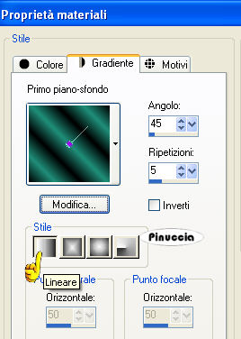 4. Con questi colori crea un gradiente con i seguenti settaggi: