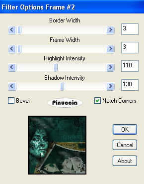 16. Effetti>Plugins>Bordermania / Frame #2, con i seguenti settaggi: