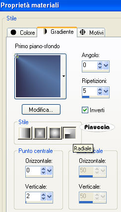 Passa il colore di sfondo a Gradiente di primo piano/sfondo con i seguenti settaggi: