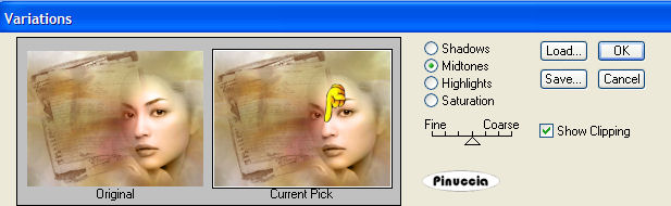 qui puoi trovare qualche risposta ai tuoi dubbi. Se l'argomento che ti interessa non è presente, ti prego di segnalarmelo. Questo tutorial è stato scritto con PSP XI, ma può essere eseguito anche con le altre versioni di PSP. Per tradurlo l'ho eseguito con PSP X. Occorrente: Materiale qui (Attenzione, i livelli dei tubes sono chiusi). Metti i pennelli nella cartella dei pennelli. Filtro: FM Tile Tools - Blend Emboss qui Adjust Variations qui Apri i tubes in PSP, duplicali (shift+D) e chiudi gli originali. Imposta il colore di primo piano con #746b59, e il colore di sfondo con #6e3f1e. 1. Apri l'immagine hintergrund.jpg. Questa sarà la base del tuo lavoro. Livelli>Nuovo livello raster. Attiva lo strumento Pennello ![]() cerca e seleziona il pennello oldPapier.PspBrush, con i seguenti settaggi: ![]() Applica il pennello al centro dell'immagine, cliccando con il tasto destro del mouse per usare il colore di sfondo. Immagine>Ruota per gradi: ![]() Effetti>Plugins>FM Tile Tools - Blend Emboss, con i settaggi standard. ![]() Sposta il pennello a sinistra.![]() Livelli>Unisci>Unisci visibile. 2. Attiva il tube di Patry e vai a Modifica>Copia. Torna al tuo lavoro e vai a Modifica>Incolla come nuovo livello. Sposta il tube sul lato destro.Cambia la modalità di miscelatura di questo livello in Luminanza (esistente). Livelli>Unisci>Unisci visibile. Effetti>Plugins>Adjust Variations: clicca una volta su Current Pick, ma naturalmente puoi sperimentare le varie combinazioni di colore: ![]() Nell'esempio sotto il titolo: 2 clic More Green, 1 clic More Red, 2 clic More Blue. 3. Attiva il tube scrabtube123.psp e vai a Modifica>Copia. Torna al tuo lavoro e vai a Modifica>Incolla come nuovo livello. Il tube è già posizionato. Livelli>Unisci>Unisci tutto. Immagine>Aggiungi bordatura, 1 pixel, simmetriche, con il colore bianco. Immagine>Aggiungi bordatura, 1 pixel, simmetriche, con il colore #746b59. (o un altro colore scuro preso dalla tua immagine) Immagine>Aggiungi bordatura, 30 pixels, simmetriche, con il colore bianco. Immagine>Aggiungi bordatura, 4 pixels, simmetriche, con il colore #746b59. 4. Attiv ail tube scrabtube_122.psp e vai a Modifica>Copia. Torna al tuo lavoro e vai a Modifica>Incolla come nuovo livello. Spostalo nell'angolo in basso a sinistra.Effetti>Effetti 3D>Sfalsa ombra, con i seguenti settaggi: ![]() Livelli>Duplica. Immagine>Rifletti. Immagine>Capovolgi. Livelli>Unisci>Unisci tutto. 5. Livelli>Nuovo livello raster. Attiva lo strumento Pennello ![]() cerca e seleziona il pennello ecken7.PspBrush. Imposta il colore di primo piano con #746b59. Clicca con il tasto sinistro del mouse nell'angolo in alto a sinistra. Livelli>Duplica. Immagine>Rifletti. Immagine>Capovolgi. Immagine>Ridimensiona, al 90%, tutti i livelli selezionato. Aggiungi la tua firma o il tuo watermark e salva in jpg. Nell'esempio sotto questi i settaggi del filtro Variations: 1 clic More Red, 2 clic More Green, 3 clic More blue, 1 clic Lighter: ![]() ![]() Le vostre versioni. Grazie ![]() Monique ![]() Se hai problemi o dubbi, o trovi un link non funzionante, o anche soltanto per un saluto, scrivimi 8 Marzo 2007 |