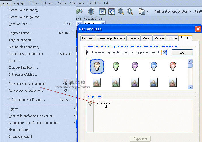 Nous avons à nouveau les fonctions Image>Miroir et Image>Renverser,