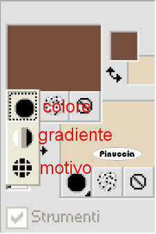 Se in un tutorial stai usando tutti i materiali - colore, gradiente, motivo - o soltanto due di questi, puoi passare da una modalitā all'altra senza dover aprire la paletta dei materiali.