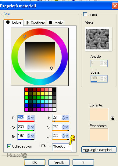 Clicca il quadratino centrale per aprire la paletta dei Materiali.