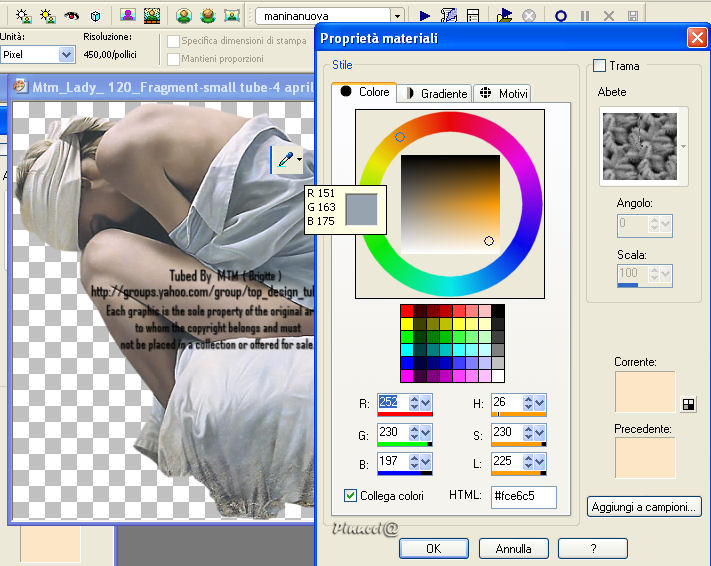 Imposta come colore di primo piano un colore chiaro preso dal tube...