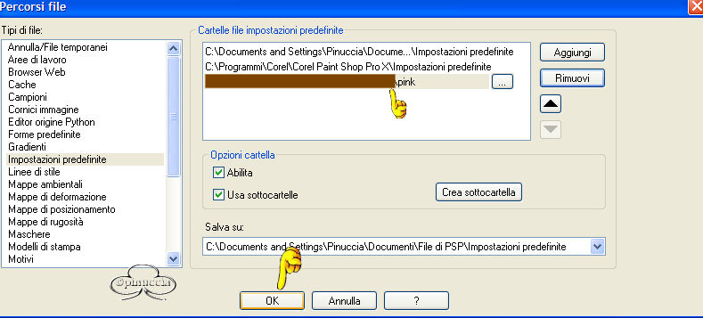 Apparirā la schermata dei "Percorsi file".