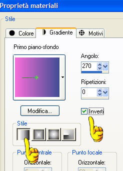 Crea un gradiente di primo piano/sfondo, con i seguenti settaggi: