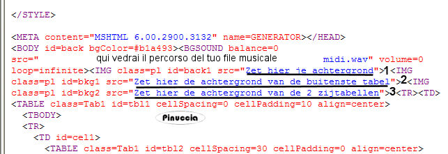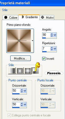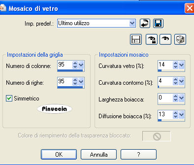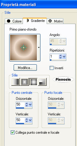qui puoi trovare qualche risposta ai tuoi dubbi. Se l'argomento che ti interessa non è presente, ti prego di segnalarmelo. Occorrente: Materiale qui Il tube è di Filly. Metti la selezione Jean_half_rond nella cartella Selezioni di PSP. Metti il pennello Blauwe fantasie nella cartella dei Pennelli di PSP. se hai problemi con i pennelli vedi qui Filtri: Greg's Factory Output II qui Imposta il colore di primo piano con #755534, e il colore di sfondo con #F1DECF. Passa il colore di primo piano a Gradiente di primo piano/sfondo, con i seguenti settaggi: ![]() 1. Apri una nuova immagine trasparente 625 x 475 pixels, e riempila con il gradiente.2. Selezione>Carica/Salva selezione>Carica selezione da disco: cerca e carica la selezione jean_half_rond. ![]() 3. Livelli>Nuovo livello raster. Riempi con il gradiente.4. Effetti>Effetti di trama>Mosaico di vetro: ![]() 5. Effetti>Effetti di bordo>Aumenta. 6. Effetti>Effetti 3D>sfalsa ombra: ![]() 7. Selezione>Nessuna selezione. 8. Livelli>Duplica, e togli la visibilità a questo livello. 9. Attiva il livello inferiore (il livello centrale) e spostalo a destra, vedi la schermata sotto.![]() 10. Rendi nuovamente visibile il livello superiore. 11. Di nuovo: Livelli>Duplica. 12. Immagine>Rifletti. Sposta questo livello completamente a destra:![]() 13. Livelli>Unisci>Unisci visibile. 14. Cambia i settaggi del gradiente: ![]() 15. Livelli>Nuovo livello raster. 16. Attiva lo strumento pennello ![]() cerca e seleziona il pennello blauwe fantasie e clicca una volta con il tasto sinistro del mouse. 17. Effetti>Effetti 3D>Sfalsa ombra: ![]() 18. Effetti>Effetti di bordo>Aumenta. 19. Livelli>Duplica. 20. Immagine>Capovolgi. 21. Sposta i due pennelli a destra, uno contro l'altro.![]() 22. Apri il tube con la donna. Posizionati sul livello del tube e vai a Modifica>Copia. 23. Torna al tuo lavoro e vai a Modifica>Incolla>Incolla come nuovo livello. Sposta il tube a sinistra.24. Livelli>Unisci>Unisci tutto. 25. Immagine>Aggiungi bordatura, 1 pixel, simmetriche, con il colore di primo piano. 26. Immagine>Aggiungi bordatura, 15 pixels, simmetriche, con il colore di sfondo. Seleziona questo bordo con la bacchetta magica ![]() 27. Effetti>Plugins>Greg's Factory Output - Poolshadow: ![]() 28. Selezione>Nessuna selezione. 29. Immagine>Aggiungi bordatura, 1 pixel, simmetriche, con il colore di primo piano. 30. Apri il tube pinkpearl, e vai a Modifica>Copia. Torna al tuo lavoro e vai a Modifica>Incolla>Incolla come nuovo livello. Spostalo nell'angolo in basso a sinistra.Regola>Messa a fuoco>Metti a fuoco, 1 o 2 volte. 31. Effetti>effetti 3D>Sfalsa ombra: ![]() 32. Chiudi il colore di primo piano. 33. Attiva lo strumento Testo ,seleziona il font VivianExtreme, dimensione 40, crea come mobile. Scrivi il tuo testo e mantieni selezionato. 34. Effetti>Plugins>Greg's Factory Output - Poolshadow, con i settaggi del punto 27. ![]() 35. Sposta il testo sul tube della perla. 36. Effetti>Effetti 3D>Sfalsa ombra: ![]() Selezione>Nessuna selezione. Livelli>Unisci>Unisci tutto. L'immagine è finita. Se vuoi realizzare lo script di Jeannette, ti servono anche 3 immagini di sfondo. Se vuoi usare i miei clicca qui Per eseguire lo script Apri lo script di Jeannette che trovi qui, e segui i preliminari descritti alla fine di questo tutorial, fino all'inserimento dello sfondo-suono. Dopo aver inserito lo sfondo-suono, dovrai indicare allo script dove trovare le immagini. Clicca su Origine e identifica i punti di inserimento dei vari elementi dello script. Se hai messo tutti i file in una cartella, il percorso del suono ti servirà da guida per l'inserimento degli altri files: ti basterà cambiare l'ultima parte: il nome e l'estensione. Nella schermata sotto sono indicati i punti in cui dovrai inserire, tra le virgolette, il percorso delle tre immagini di sfondo, 1. Qui inserisci il primo sfondo. 2. Qui inserisci il secondo sfondo che servirà per le tabelle esterne. 2. Qui inserisci il terzo sfondo che servirà per le tabelle scorrevoli. ![]() Nella schermata sotto è indicato il punto in cui dovrai inserire il percorso dell'immagine principale. ![]() Ricorda che, contemporaneamente, puoi controllare il risultato andando su Anteprima. fai molta attenzione alle estensioni dei files e alle maiuscole-minuscole, che devono essere corrette, altrimenti lo script non troverà le immagini da inserire Clicca adesso sulla linguetta Modifica, per aggiungere il testo. clicca due volte all'interno del riquadro. Apparirà la cornice che ti dà il via libera per sostituire il testo esistente e aggiungere il tuo. Quando hai finito, clicca all'esterno e la cornice sparirà. Il tuo messaggio con lo script è pronto per il tasto Invia. Se non vuoi spedirlo e vuoi soltanto tenerlo per te, vai a File>Salva con nome e mettilo in una cartella a tua scelta. Ricordati, però, che quando vorrai rivedere lo script, i files devono trovarsi nello stesso posto. Se nel frattempo li avrai spostati, vedrai soltanto delle crocette rosse. Avvertimento: non devi preoccuparti se in Modifica non vedrai il messaggio come dovrebbe essere (per fare questo devi andare in Anteprima). Ricorda ancora che per inviare il messaggio ti devi posizionare su Modifica. ![]() Se hai problemi o dubbi, o trovi un link non funzionante, o anche soltanto per un saluto, scrivimi. 25 Giugno 2007 |