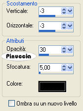 Effetti>Effetti 3D>Sfalsa ombra, con i seguenti settaggi: