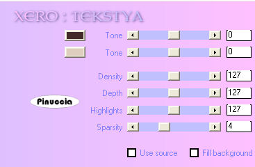 Effetti>Plugins>Xero - Tekstya, con i seguenti settaggi:
