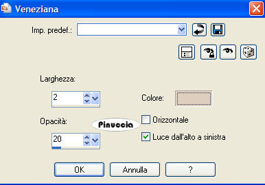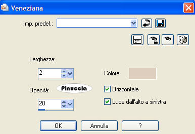 Effetti>Effetti di trama>Veneziana, con i seguenti settaggi, con il colore di sfondo: