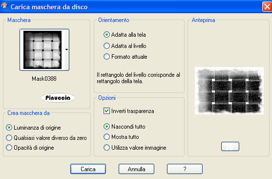 Cerca e carica la maschera Mask0388, con i seguenti settaggi, inverti trasparenza selezionato: