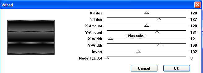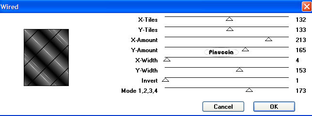 qui puoi trovare qualche risposta ai tuoi dubbi. Se l'argomento che ti interessa non è presente, ti prego di segnalarmelo. Occorrente: Materiale qui Il bel tube della donna è di Crystal. Il tube del profumo è di Yoka. Grazie Crystal e Yoka per i vostri bei tubes. Filtri: Greg's Factory Output qui VM Instan Art qui Imposta il colore di primo piano con #827466, e il colore di sfondo con #C0C0C0. 1. Apri una una nuova immagine con il colore di primo piano 600 x 450 pixels. Effetti>Plugins>VM Instant Art - Wired: ![]() 2. Regola>Messa a fuoco>Metti a fuoco, 5 volte. Dopo la prima volta puoi ripetere o andando su Modifica>Ripeti Messa a fuoco, oppure con la tastiera premendo ctrl+Y. Livelli>Nuovo livello raster. Riempi il nuovo livello con il colore di primo piano.Nella paletta dei livelli, abbassa l'opacità di questo livello al 50%. Livelli>Unisci>Unisci visibile. 3. Apri il tube della donna. Livelli>Carica/Salva maschera>Carica maschera da disco. Cerca e carica la maschera 20-20: ![]() Livelli>Elimina, e rispondi sì alla domanda Unire la maschera nel livello corrente? ![]() Livelli>Unisci>Unisci gruppo. 4. Modifica>Copia, e minimizza l'immagine perchè ti servirà ancora. Ritorna al tuo lavoro e vai a Modifica>Incolla>Incolla come nuovo livello. Abbassa l'opacità di questo livello intorno al 65%. Posiziona il tube sulla destra.Livelli>Unisci>Unisci visibile. 5. Apri una nuova immagine con il colore di primo piano 275x350 pixels. Effetti>Plugins>VM Instant Art: ![]() 6. Regola>Messa a fuoco>Metti a fuoco, 4 volte. Livelli>Nuovo livello raster. Riempi con il colore di primo piano.Abbassa l'opacità di questo livello al 50%. Livelli>Unisci>Unisci visibile. 7. Attiva nuovamente il tube della donna al quale hai applicato la maschera 20-20. Immagine>Rifletti. Immagine>Ridimensiona, a 275x350 pixels. Regola>Messa a fuoco>Metti a fuoco. Ritorna alla piccola immagine e vai a Modifica>Incolla>Incolla come nuovo livello. 8. Immagine>Aggiungi bordatura, 1 pixel, simmetriche, con il colore di sfondo. Immagine>Aggiungi bordatura, 4 pixels, simmetriche, con il colore di primo piano. Seleziona questo bordo con la bacchetta magica ![]() ![]() Effetti>Plugins>Greg's Factory Output - Pool Shadow. ![]() Selezione>Nessuna selezione. Immagine>Aggiungi bordatura, 1 pixel, simmetriche, con il colore di sfondo. 9. Livelli>Unisci>Unisci tutto. Modifica>Copia. Torna all'immagine più grande e vai a Modifica>Incolla>Incolla come nuovo livello. 10. Effetti>Effetti 3D>Sfalsa ombra, con i seguenti settaggi. ![]() Ripeti l'Effetto Sfalsa ombra, ma cambiando verticale e orizzontale a -3. 11. Sistema l'immagine a sinistra.12. Apri il tube con il profumo e vai a Modifica>Copia. Torna al tuo lavoro e vai a Modifica>Incolla>Incolla come nuovo livello. Regola>Saturazione e tonalità>Viraggio: ![]() 13. Effetti>Effetti 3D>Sfalsa ombra, con i settaggi usati al punto 9. Livelli>Unisci>Unisci tutto. 14. Immagine>Aggiungi bordatura, 1 pixel, simmetriche, con il colore di sfondo. Immagine>Aggiungi bordatura, 4 pixels, simmetriche, con il colore di primo piano. Seleziona questo bordo con la bacchetta magica ![]() ![]() Effetti>Plugins>Greg's Factory Output - Pool Shadow. ![]() Selezione>Nessuna selezione. Immagine>Aggiungi bordatura, 1 pixel, simmetriche, con il colore di sfondo. 15. Nella paletta dei materiali passa il colore di primo piano a colore di sfondo, e il colore di sfondo a colore di primo piano. per farlo sarà sufficiente cliccare sulla freccia tra le due palette dei colori 16. Attiva lo strumento Testo (non chiudere il colore di primo piano),scegli un font e scrivi il tuo testo. io ho usato il font Incarnation. Effetti>Effetti 3D>Sfalsa ombra, come al punto 10. Regola>Messa a fuoco>Metti a fuoco. Livelli>unisci>Unisci tutto. ![]() L'immagine è finita. Se vuoi realizzare lo script di Jeannette, ti servono anche due immagini di sfondo. Apri due immagini 100x100 pixels, e riempile con un colore chiaro e un colore scuro preso dall'immagine. A entrambe, applica un effetto trama a scelta e salvale in formato jpg. Per eseguire lo script Apri lo script di Jeannette che trovi qui, e segui i preliminari descritti alla fine di questo tutorial, fino all'inserimento dello sfondo-suono. Dopo aver inserito lo sfondo-suono, dovrai indicare allo script dove trovare le immagini. Clicca su Origine e identifica i punti di inserimento dei vari elementi dello script. Se hai messo tutti i file in una cartella, il percorso del suono ti servirà da guida per l'inserimento degli altri files: ti basterà cambiare l'ultima parte: il nome e l'estensione. Nella schermata sotto sono indicati i punti in cui dovrai inserire, tra le virgolette, il percorso delle due immagini di sfondo, 1. Qui inserisci il primo sfondo. 2. Qui inserisci il secondo sfondo che servirà per le tabelle. ![]() Nella schermata sotto è indicato il punto in cui dovrai inserire il percorso dell'immagine principale. ![]() Ricorda che, contemporaneamente, puoi controllare il risultato andando su Anteprima. fai molta attenzione alle estensioni dei files e alle maiuscole-minuscole, che devono essere corrette, altrimenti lo script non troverà le immagini da inserire Clicca adesso sulla linguetta Modifica, per aggiungere il testo. clicca due volte all'interno del riquadro. Apparirà la cornice che ti dà il via libera per sostituire il testo esistente e aggiungere il tuo. Quando hai finito, clicca all'esterno e la cornice sparirà. Il tuo messaggio con lo script è pronto per il tasto Invia. Se non vuoi spedirlo e vuoi soltanto tenerlo per te, vai a File>Salva con nome e mettilo in una cartella a tua scelta. Ricordati, però, che quando vorrai rivedere lo script, i files devono trovarsi nello stesso posto. Se nel frattempo li avrai spostati, vedrai soltanto delle crocette rosse. Avvertimento: non devi preoccuparti se in Modifica non vedrai il messaggio come dovrebbe essere (per fare questo devi andare in Anteprima). Ricorda ancora che per inviare il messaggio ti devi posizionar
