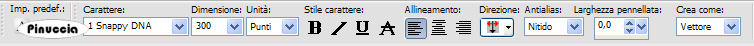 font 1SnappyDNA, colore di sfondo nero, con i seguenti settaggi: