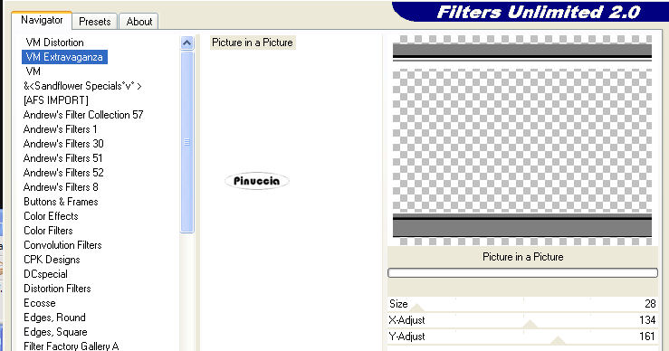 15. Effetti>Plugins>VM Extravaganza - picture in a picture, con i seguenti settaggi: