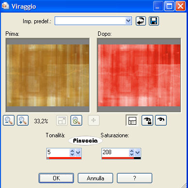 Regola>Saturazione e tonalità>Viraggio, con i settaggi precedenti.