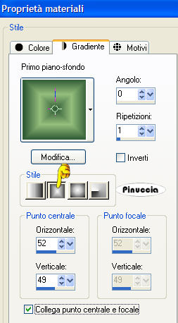 Passa il colore di primo piano a Gradiente di primo piano/sfondo, con i seguenti settaggi: