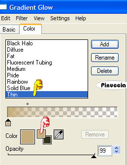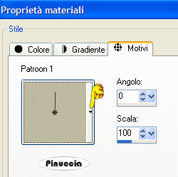 qui puoi trovare qualche risposta ai tuoi dubbi. Se l'argomento che ti interessa non è presente, ti prego di segnalarmelo. Questo tutorial è stato scritto in PSP 9, ma può essere eseguito anche con le altre versioni di PSP. Per tradurlo, l'ho eseguito con PSP X. Occorrente: Materiale qui Per questo tutorial ho usato tubes di Kat e diversi elementi scrap. Rispetta il lavoro degli autori e lascia i tubes al loro stato originale. Filtri: Filters Unlimited 2 qui FM Tile Tools qui Eye Candy 4000 qui I tubes per lo scrap sono stati acquistati personalmente dall'autrice del tutorial. Puoi utilizzarli soltanto per questo tutorial, e per il tuo uso personale. Non puoi offrirli in vendita, o condividerli, o usarli per i tuoi tutorial, o per altri scopi commerciali. Leggi attentamente le condizioni e i termini d'uso dei disegnatori di scrap. altrimenti l'autrice smetterà di scrivere tutorial di scrap. Grazie per la tua collaborazione. 1. Apri una nuova immagine trasparente 450 x 420 pixels. Imposta il colore di primo piano con #c6ad7b, e il colore di sfondo con #30321b. Crea un gradiente lineare, con i seguenti settaggi: ![]() Riempi l'immagine con il gradiente.Regola>Sfocatura>Sfocatura gaussiana, raggio 30. ![]() 2. Effetti>Plugins>Filters Unlimited 2 - Paper Textures - Japanes Paper: ![]() 3. Apri il tube "KATenchantedgirl". Posizionati sul livello del tube e vai a Modifica>Copia. Torna al tuo lavoro e vai a Modifica>Incolla>Incolla come nuovo livello. Effetti>Plugins>FM Tile Tools - Blend Emboss: ![]() 4. Regola>Correzione fotografica>Rimuovi disturbo fotocamera digitale. (Se stai usando PSP X: Regola>Rimozione disturbo fotocamera digitale). Immagine>Aggiungi bordatura, 1 pixel, simmetriche, con il colore #30321b. (ti apparirà un messaggio di Azione automatica. Significa che prima di eseguire la bordatura avresti dovuto eseguire l'operazione descritta. Non preoccuparti: clicca ok, il programma lo farà per te e andrà avanti). Selezione>Seleziona tutto. Selezione>Modifica>contrai, di 1 pixel. Selezione>Inverti. Effetti>Plugins>Eye Candy 4000 - Gradient Glow. Imposta il colore chiaro di primo piano. Per fare questo clicca sulla paletta indicata dalla manina rossa, e la paletta più grande assumerà il colore impostato come colore di primo piano. ![]() Passa alla linguetta basic e imposta i valori, come indicato nella schermata: ![]() Selezione>Nessuna selezione. 5. Duplica l'immagine: shift+D e metti da parte l'originale, che chiamerò fairy 1. 6. Continua sulla copia. Immagine>Aggiungi bordatura, simmetriche non selezionato, con il colore bianco e i seguenti settaggi: ![]() Seleziona il bordo con la bacchetta magica , sfumatura 0,Livelli>Nuovo livello raster. Apri il motivo "Patroon 1" , e minimizzalo. Imposta il colore di primo piano su Motivi. Apri il menu, cliccando sulla freccetta a fianco del box, cerca nella lista e seleziona il Motivo: ![]() Riempi la selezione con questo Motivo.Mantieni selezionato. 7. Effetti>Plugins>Filters Unlimited 2 - Edges, Square - Square Edge 17. Selezione>Nessuna selezione. Effetti>Effetti 3D>Sfalsa ombra, con i seguenti settaggi: ![]() 8. Metti da parte questa immagine, che chiamerò fairy 2. 9. Apri Patroon 1 e duplicalo: shift+D, e chiudi l'originale. La copia sarà il tuo lavoro. Apri il tube "Stitching_Paper" e vai a Modifica>Copia. Torna al tuo lavoro (la copia do Patroon1) e vai a Modifica>Incolla>Incolla come nuovo livello. Effetti>Effetti 3D>Sfalsa ombra, con i seguenti settaggi: ![]() 10. Apri la prima immagine: Fairy 1 e vai a Modifica>Copia. Torna al tuo lavoro e vai a Modifica>Incolla>Incolla come nuovo livello. Non occorre spostarla. Va bene così. 11. Apri Fairy 2 (il livello superiore è selezionato) e vai a Modifica>Copia. Torna al tuo lavoro e vai a Modifica>Incolla>Incolla come nuovo livello. Avrai questo: ![]() 12. Apri il tube "Ribbon" e vai a Modifica>Copia. Torna al tuo lavoro e vai a Modifica>Incolla>Incolla come nuovo livello. Spostalo in alto.Livelli>Duplica. Immagine>Capovolgi. 13. Apri il tube "Ribbon_1" e vai a Modifica>Copia. Torna al tuo lavoro e vai a Modifica>Incolla>Incolla come nuovo livello. Spostalo sopra il bordo superiore.Livelli>Duplica. Immagine>Capovolgi. 14. Apri il tube "Stitching", e vai a Modifica>Copia. Torna al tuo lavoro e vai a Modifica>Incolla>Incolla come nuovo livello. Spostalo sotto il bordo superiore.![]() Livelli>Duplica. Immagine>Capovolgi. 15. Apri il tube "Border" e vai a Modifica>Copia. Torna al tuo lavoro e vai a Modifica>Incolla>Incolla come nuovo livello. Spostalo in basso,