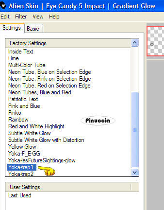 Metti il preset nella cartella del filtro AlienSkin-Eye Candy 5 Impact -> Setting->Glow