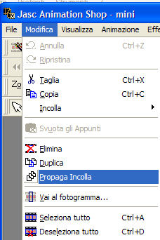 Torna in Animation Shop e vai a Modifica>Incolla>Incolla come nuova animazione, e procedi come spiegato sopra.