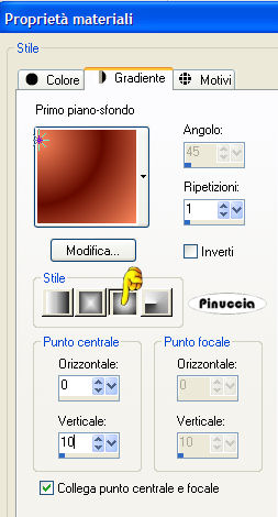 Passa il colore di primo piano a Gradiente di primo piano/sfondo con i seguenti settaggi: