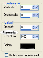 Effetti>Effetti 3D>Sfalsa ombra, con i seguenti settaggi: