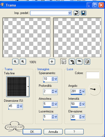11. Effetti>Effetti di trama>Trama, con i seguenti settaggi: