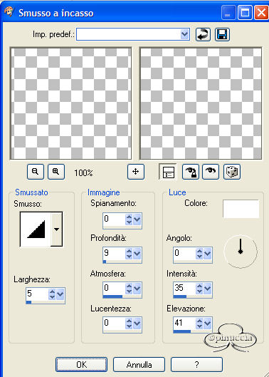 18. Effetti>Effetti 3D>Smusso a incasso, con i seguenti settaggi:
