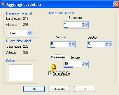 qui puoi trovare qualche risposta ai tuoi dubbi. Se l'argomento che ti interessa non è presente, ti prego di segnalarmelo. Questo tutorial fa parte della serie "Tag facili" di Gerda. Occorrente: Materiale qui 1. Apri una nuova immagine trasparente 600 x 600 pixels, Imposta il colore di primo piano con il bianco (#ffffff). e riempi l'immagine trasparente con questo colore.Apri il tube GerdaSEperfectpicture2, e vai a Modifica>copia. Torna al tuo lavoro e vai a Modifica>Incolla>Incolla come nuovo livello. E' già correttamente posizionato. Apri il tube GerdaSEperfectpicture3 e vai a Modifica>copia. Torna al tuo lavoro e vai a Modifica>Incolla>Incolla come nuovo livello. E' già correttamente posizionato. Apri il tube GerdaSElint e vai a Modifica>copia. Torna al tuo lavoro e vai a Modifica>Incolla>Incolla come nuovo livello. Livelli>Duplica. Posiziona i due tubes ai lati del foglio, come nell'esempio. ![]() 2. Apri il tube "tubebyhs-120 hunk", e vai a Modifica>copia. Torna al tuo lavoro e vai a Modifica>Incolla>Incolla come nuova IMMAGINE. Immagine>Ridimensiona, per tre volta all'80%, tutti i livelli non selezionato. Livelli>Nuovo livello raster. Livelli>Disponi>Sposta giù. Imposta il colore di sfondo con #5d7b95, e riempi il livello con questo colore.per riempire con il colore di sfondo, devi cliccare con il tasto destro del mouse. Immagine>Aggiungi bordatura, simmetriche non selezionato, con i seguenti settaggi: ![]() Riempi la selezione con il colore di primo piano (bianco).Modifica>Copia. 3. Torna al tuo lavoro e vai a Modifica>Incolla>Incolla come nuovo livello. Immagine>Ruota>Ruota per gradi, 10 gradi a destra, tutti i livelli non selezionato. Regola>Messa a fuoco>Metti a fuoco. Effetti>Effetti 3D>Sfalsa ombra, con i seguenti settaggi, colore nero. ![]() Livelli>Duplica. Immagine>Ridimensiona, all'80%, tutti i livelli non selezionato. Sposta la foto in basso.Livelli>Duplica. Immagine>Rifletti. Posiziona le immagini come nell'esempio:![]() 4. Apri GerdaSEnaamdeco e vai a Modifica>copia. Torna al tuo lavoro e vai a Modifica>Incolla>Incolla come nuovo livello. Posiziona il testo in alto a sinistra, vedi il mio esempio.Apri naamkaartje e vai a Modifica>Copia. Torna al tuo lavoro e vai a Modifica>Incolla>Incolla come nuovo livello. Sposta la targhetta in basso, vedi il mio esempio.Apri il nastro Gerdaperfectpicture4 e vai a Modifica>copia. Torna al tuo lavoro e vai a Modifica>Incolla>Incolla come nuovo livello. Livelli>Duplica, 2 volte, e posiziona i nastrini negli angoli delle foto,vedi il mio esempio. Aggiungi il tuo nome alla tag (io ho usato il font Carlotta). Livelli>Unisci>Unisci tutto, e salva in formato jpg. ![]() ![]() Angela ![]() Se hai problemi o dubbi, o trovi un link non funzionante, o anche soltanto per un saluto, scrivimi 17 Dicembre 2007 |