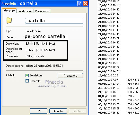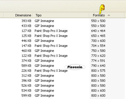 Per esempio: Dimensione per conoscere il "peso" del file: