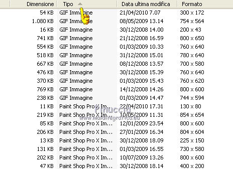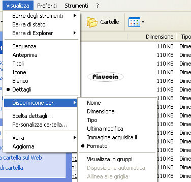 Per disporre i files in un ordine stabilito, puoi anche usare Visualizza>Disponi icone per... e, nel menu a tendina, scegliere la disposizione che ti interessa visualizzare.
