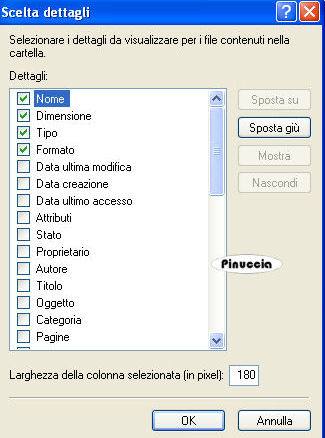 Stabilisci quali sono i dettagli che ti interessano dei files contenuti nella cartella,