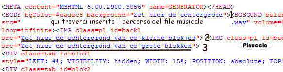 qui puoi trovare qualche risposta ai tuoi dubbi. Se l'argomento che ti interessa non è presente, ti prego di segnalarmelo. ![]() Questo tutorial è stato oggetto di un contesto del forum Emozioni grafiche ![]() qui trovi i lavori delle partecipanti ![]() Occorrente: Materiale qui Il tubes sono di MarieL e Monique42. Filtri: Greg's Factory Output II qui Eye Candy 3 qui DSB Flux qui Imposta il colore di primo piano con #F7EBD4, e il colore di sfondo con #2E0B02. 1. Apri una nuova immagine con il colore di primo piano 550 x 400 pixels. 2. Effetti>Plugins>Greg's Factory Output - Poolshadow, con i seguenti settaggi: ![]() 3. Effetti>Plugins>DSB - Linear Transmission: ![]() 4. Effetti>Effetti di bordo>Aumenta di più. 5. Livelli>Nuovo livello raster. 6. Attiva lo strumento Pennello ,cerca e seleziona il pennello zomer venster, e applicalo sull'immagine, cliccando una volta con il tasto destro del mouse, per usare il colore di sfondo. 7. Sposta la finestra completamente a destra.![]() Livelli Metti da parte l'immagine per il momento. 8. Apri una nuova immagine con il colore di primo piano 600 x 450 pixels. 9. Effetti>Plugins>Greg's Factory Output - Poolshadow, con i seguenti settaggi: ![]() 10. Effetti>Plugins>Eye Candy - Swirl: ![]() 12. Regola>Messa a fuoco>Metti a fuoco, una o due volte. 13. Torna all'immagine che hai messo da parte al punto 7 e vai a Modifica>Copia. non chiuderla. Ti potrà servire se vorrai realizzare lo script di Jeannette. Sulla seconda immagine aperta al punto 8: Modifica>Incolla>Incolla come nuovo livello. 14. Effetti>Effetti 3D>Sfalsa ombra: ![]() Ripeti l'Effetto Sfalsa ombra, ma cambiando verticale e orizzontale a - 10. 15. Livelli>Unisci>Unisci visibile. 16. Immagine>Aggiungi bordatura, 1 pixel, simmetriche, con il colore di sfondo. 17. Immagine>Aggiungi bordatura, 20 pixels, simmetriche, con il colore di primo piano. 18. Seleziona il bordo con la bacchetta magica ![]() Effetti>Plugins>Greg's Factory Output - Poolshadow, con i settaggi usati al passo 2. Selezione>Nessuna selezione. 19. Apri il tube della donna e vai a Modifica>Copia. Torna al tuo lavoro e vai a Modifica>Incolla>Incolla come nuovo livello. Spostalo a sinistra, contro il bordo inferiore.20. Apri il tube con i cosmetici. Elimina i livelli del watermark e dello sfondo. 21. Immagine>Ridimensiona, a 200 pixels di altezza. 22. Modifica>Copia. Torna al tuo lavoro e vai a Modifica>Incolla>Incolla come nuovo livello. Spostalo in basso a destra, lasciando la polvere fuori dall'immagine.![]() Regola>Messa a fuoco>Metti a fuoco. 23. Effetti>Effetti 3D>Sfalsa ombra: ![]() 24. Livelli>Unisci>Unisci tutto. 25. Immagine>Aggiungi bordatura, 1 pixel, simmetriche, con il colore di sfondo. L'immagine è finita. Se vuoi realizzare lo script di Jeannette, ti occorrono anche 3 immagini di sfondo. Una di queste immagini, necessaria per i blocchi più grandi, deve essere alta 300 pixels, la larghezza non è importante. Indicazioni per gli sfondi: Questo è quello che ho fatto io. Naturalmente, puoi scegliere di creare altri sfondi, o cambiare le impostazioni come preferisci. Per il primo sfondo, riempi un'immagine di 150x150 pixels con il colore di primo piano. Effetti>Effetti di trama>Incannicciato, con i settaggi standard. Livelli>Nuovo livello raster e riempi nuovamente con il colore di primo piano. Abbassa l'opacità del livello intorno all'80-85%. Livelli>Unisci>Unisci tutto Effetti>Effetti di immagine>Motivo unico, settaggi standard e salva in formato jpg come sfondo1. Per il secondo sfondo, che servirà per i blocchi grandi: Attiva l'immagine con il pennello, che ti ho consigliato di non chiudere al punto 13. Modifica>Annulla Unisci visibile. Sposta il pennello in modo che si veda tutto.Ritaglia la finestra:![]() Usa il segno di spunta per applicare la taglierina.Immagine>Ridimensiona, a 300 pixels di altezza, e salva in formato jpg come sfondo2. Per il terzo sfondo, che servirà per i blocchi piccoli: riempi un'immagine 200x200 pixels con il colore di primo piano. Applica l'Effetto Poolshadow. Copia e incolla il tube di Monique (i cosmetici) come nuovo livello. Livelli>Unisci>Unisci visibile. Effetti>Effetti di immagine>Motivo unico. Abbassa l'opacità al 50%. Livelli>Unisci>Unisci tutto, e salva in formato jpg come sfondo3. Per eseguire lo script Apri lo script di Jeannette che trovi qui, e segui i preliminari descritti alla fine di questo tutorial, fino all'inserimento dello sfondo-suono. Dopo aver inserito lo sfondo-suono, dovrai indicare allo script dove trovare le immagini. Clicca su Origine e identifica i punti di inserimento dei vari elementi dello script. Se hai messo tutti i file in una cartella, il percorso del suono ti servirà da guida per l'inserimento degli altri files: ti basterà cambiare l'ultima parte: il nome e l'estensione. Nella schermata sotto sono indicati i punti in cui dovrai inserire, tra le virgolette, il percorso delle tre immagini di sfondo, 1. Qui inserisci il percorso del primo sfondo. 2. Qui inserisci il percorso dello sfondo2 (il pennello), che servirà per i blocchi più grandi. 3. Qui inserisci il percorso dello sfondo3 (i cosmetici), che servirà per i blocchi più piccoli. ![]() Nella schermata sotto è indicato il punto in cui dovrai inserire il percorso dell'immagine principale. ![]() Ricorda che, contemporaneamente, puoi controllare il risultato andando su Anteprima. fai molta attenzione alle estensioni dei files e alle maiuscole-minuscole, che devono essere corrette, altrimenti lo script non troverà le immagini da inserire Clicca adesso sulla linguetta Modifica, per aggiungere il testo. clicca due volte all'interno del riquadro. Apparirà la cornice che ti dà il via libera per sostituire il testo esistente e aggiungere il tuo. Quando hai finito, clicca all'esterno e la cornice sparirà. Il tuo messaggio con lo script è pronto per il tasto Invia. Se non vuoi spedirlo e vuoi soltanto tenerlo per te, vai a File>Salva con nome e mettilo in una cartella a tua scelta. Ricordati
