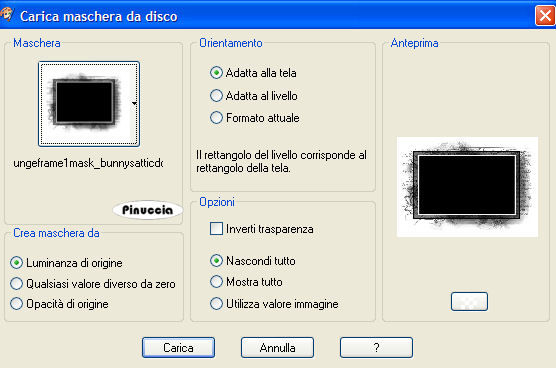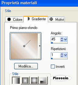qui puoi trovare qualche risposta ai tuoi dubbi. Se l'argomento che ti interessa non è presente, ti prego di segnalarmelo. Occorrente: Materiale: qui Il bel tube usato per questo tutorial è di Jet (il suo sito è chiuso) tutte le traduzioni le trovate sul mio sito qui Filtro: FM Tile Tools qui Apri tutti i tubes in PSP. Metti la maschera nella cartella Maschere e la trama (purpl b019) nella cartella Trame. Apri una nuova immagine trasparente 700 x 500 pixels. Imposta il colore di primo piano con #bd9c7d, o scegli un bel colore dal tube. Imposta il colore di sfondo con il bianco. Riempi l'immagine trasparente con il colore di primo piano.Livelli>Nuovo livello raster. Riempi il nuovo livello con il bianco.Livelli>Carica/Salva maschera>Carica maschera da disco. Cerca e carica la maschera gh_grungeframe1mask. ![]() Livelli>Unisci>Unisci gruppo. Effetti>Plugins>FM Tile Tools - Blend Emboss, con i settaggi standard. ![]() Clicca al centro del quadrato con la bacchetta magica ![]() sfumatura 6. ![]() Livelli>Nuovo livello raster. Attiva l'immagine di sfondo e vai a Modifica>Copia. Torna al tuo lavoro e vai a Modifica>Incolla nella selezione. Cambia la modalità di miscelatura di questo livello in Luminanza (esistente) e abbassa l'opacità al 75%. Selezione>Deseleziona. Attiva il tube SE-Basics e vai a Modifica>Copia. Torna al tuo lavoro e vai a Modifica>Incolla come nuovo livello. Spostalo in alto.Livelli>Duplica. Immagine>Capovolgi. Sistema la cucitura sul bordo inferiore.![]() Attiva il tube della donna "Jet-woman02-mei-2007" e vai a Modifica>copia. Torna al tuo lavoro e vai a Modifica>Incolla come nuovo livello. Sposta il tube a sinistra.Effetti>Effetti 3D>Sfalsa ombra, con i seguenti settaggi, colore nero. ![]() Apri il tube del gabbiano "prc-seagulls1" e vai a Modifica>Copia. Torna al tuo lavoro e vai a Modifica>Incolla come nuovo livello. Spostalo in alto a destra.Effetti>Effetti 3D>Sfalsa ombra, con i settaggi precedenti. Attiva il tube dell'uomo e vai a Modifica>Copia. Torna al tuo lavoro e vai a Modifica>Incolla come nuovo livello. Spostalo un po' a sinistra e in basso, proprio sopra il bordo.Cambia la modalità di miscelatura di questo livello in Luminanza (Esistente) e abbassa l'opacità al 65%. Livelli>Nuovo livello raster. Attiva il file di testo "text3 bp 0003". File>Esporta>Pennello personalizzato: ![]() dai un nome al pennello e clicca ok. cerca e seleziona il pennello che hai appena esportato, e applicalo con il colore bianco sull'immagine, cliccando tre volte, in modo da scurire il testo. Livelli>Unisci>Unisci tutto. Aggiungi il tuo nome e/o il tuo watermark. Il font che ho usato è Charme WD, dimensione 48. Immagine>Aggiungi bordatura, 50 pixels, simmetriche, con il colore nero. Seleziona il bordo con la bacchetta magica ![]() Attenzione! sfumatura 0. ![]() Passa il colore di primo piano a Gradiente di primo piano/sfondo, stile lineare, con i seguenti settaggi: (lascia il colore di primo piano con il colore impostato all'inizio e imposta il bianco come colore di sfondo), ![]() Riempi il bordo con il gradiente.Effetti>Effetti 3D>Sfalsa ombra, con i seguenti settaggi, colore nero. ![]() Ripeti l'Effetto Sfalsa ombra, ma cambiando verticale e orizzontale a -3. Mantieni selezionato. Effetti>Effetti di trama>Trama, cerca e seleziona la trama purpl_b019: ![]() Mantieni ancora selezionato. Immagine>ruota per gradi, 180 gradi a sinistra. ![]() Ripeti: Effetti>Effetti di trama>Trama, purpl_b019, con i settaggi precedenti. Selezione>Deseleziona. Se vuoi, ridimensiona l'immagine, e salva in formato jpg. L'esempio sotto con l'applicazione della maschera con l'opzione inverti trasparenza selezionato. ![]() ![]() ![]() ![]() Se hai problemi o dubbi, o trovi un link non funzionante, o anche soltanto per un saluto, scrivimi. 29 Maggio 2007 |