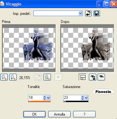 Regola>Saturazione e tonalità>Viraggio, con i settaggi precedenti.
