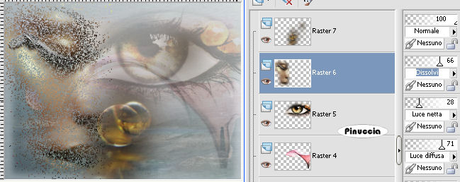 Sostituisce a caso i colori di alcuni pixel del livello selezionato con quelli dei livelli sottostanti per ottenere un effetto granulato. L'opacità del livello selezionato determina il numero di pixel sostituiti: minore l'opacità, maggiore è il numero di pixel sostituiti.
