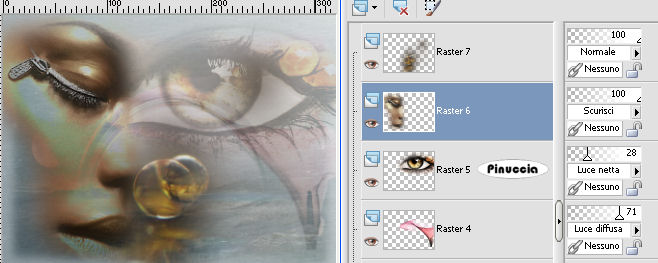 Combina le modalità di miscelatura Rafforza e Indebolisci. Se il valore del canale di colore del livello selezionato è inferiore a 128, viene utilizzata la modalità di miscelatura Rafforza. Se il valore del canale di colore è superiore o uguale a 128, viene utilizzata la modalità Indebolisci. È possibile utilizzare la modalità di miscelatura Luce diffusa per aggiungere luci soffuse o ombre.