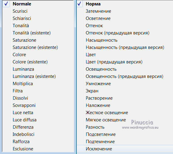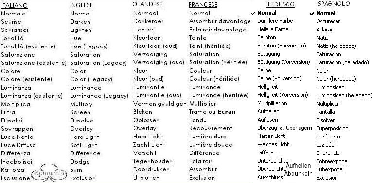 E' evidente, che il risultato delle modalità di miscelatura varia a seconda dei colori, delle immagini, dei livelli sottostanti...