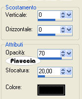 Effetti>Effetti 3D>Sfalsa ombra, con i seguenti settaggi.