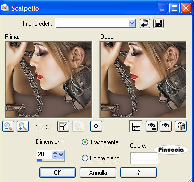 Effetti>Effetti 3D>Scalpello, con i seguenti settaggi: