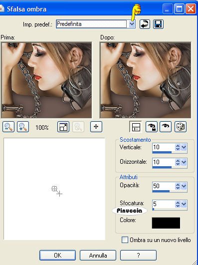 Effetti>Effetti 3D>Sfalsa ombra, con i seguenti settaggi: